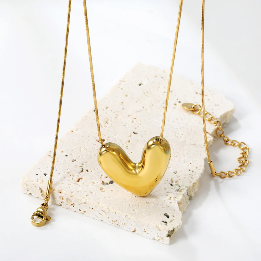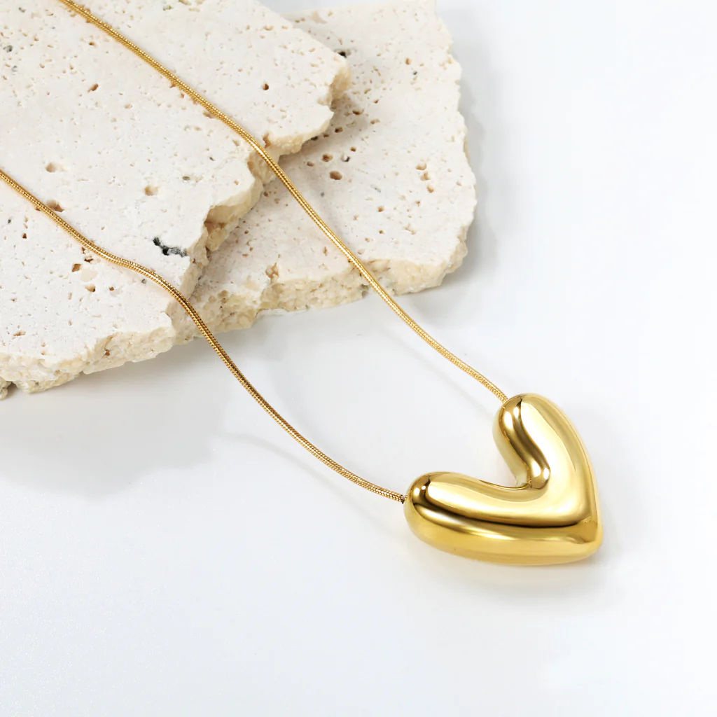 This necklace features a beautifully polished heart pendant crafted in gold-tone stainless steel. The clean, modern design symbolizes love while maintaining a stylish, contemporary feel. Simple yet meaningful, it’s a piece that can be worn daily or given as a thoughtful gift.